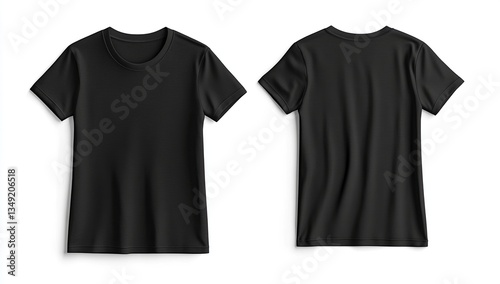 Black Women's Short Sleeve T-Shirt Mockup Front and Back View on White Background