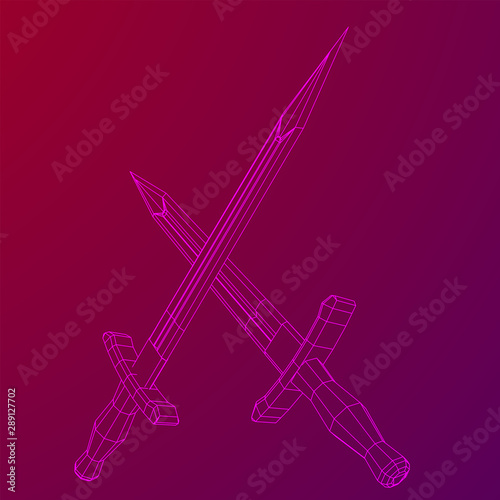 Blade tactical combat hunting survival bowie knife. Model wireframe low poly mesh vector illustration