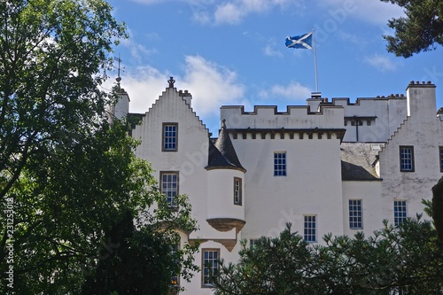Blair Athol, Scotland: The flag of Scotland flies over Blair Castle, a 13th-century stronghold in the Scottish Highlands.