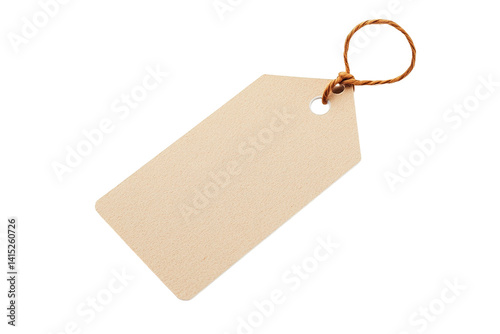 Blank beige tag. String attaches to a round hole. Clean and simple on a transparent background