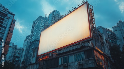 Blank Billboard in Urban Skyline: Advertising Space Amidst City Buildings