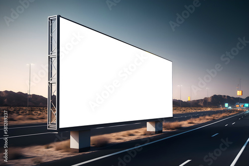 blank billboard on the highway roadside, Large empty highway billboard, Outdoor advertisment marketing billboard mockup on highway, generative ai