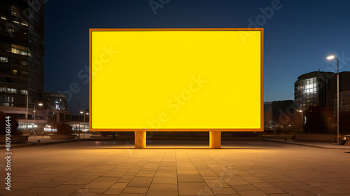 Blank billboard without text in city square at night