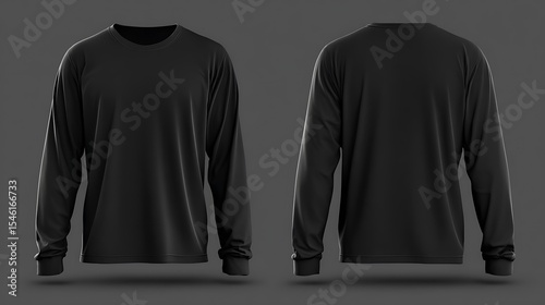 Blank black long sleeve t-shirt template. Front and back views. Vector illustration. .
