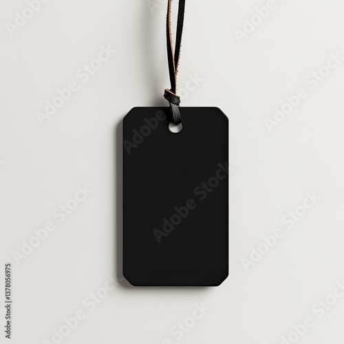 Blank black rectangular tag with leather cord