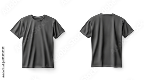 Blank black t-shirt mockup, front and back view, ready for design. Isolated on white background