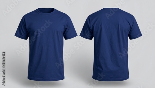 Blank blue t-shirt mockup for showcasing creative designs. Front and back view of a classic cotton tee on a neutral background, a perfect apparel mockup.
