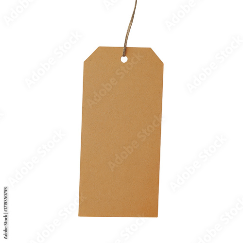 Blank Brown Kraft Paper Gift Tag Hanging by Twine label empty isolated on a transparent background