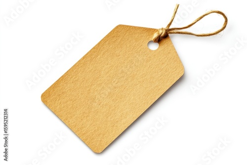 Blank brown paper tag with string for labeling and gift decoration, empty rustic label for customization, ideal for crafts and presentations