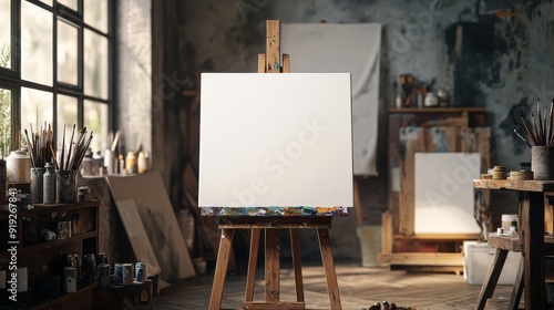 Blank Canvas on Wooden Easel in an Artist's Studio