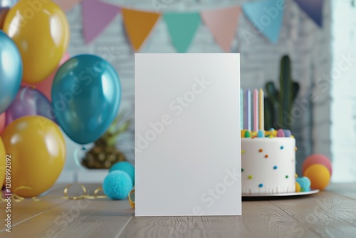 Blank Card with Colorful Balloon and Cake Decoration Background