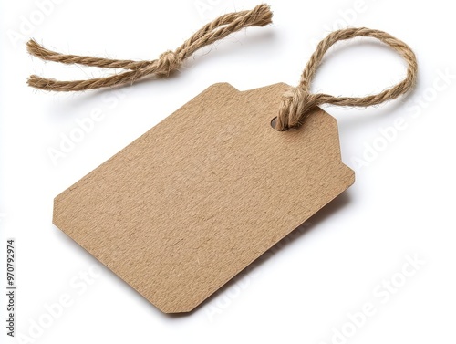 Blank clothing tag isolated on white background, simple label, alone in its solitude.