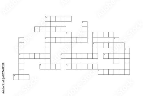 Blank crossword puzzle grid for eighteen words, empty template squares to fill in for riddle, educational or leisure game, ready to be used for making any word puzzle