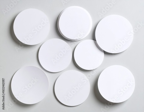 Blank curled sticker mockup isolated. Circular label template. 3D rendering