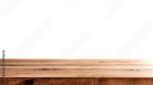 Blank empty space wood wooden table top on white wall background. Generative AI