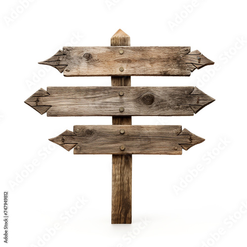 Blank empty wooden rustic signage sign board signpost post wood on white background сreated with Generative Ai