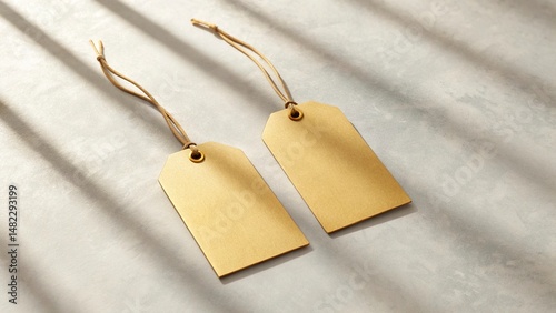 Blank golden price tags on concrete background. 3d rendering.