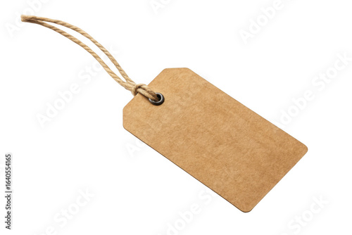 Blank kraft paper hang tag with string isolated on transparent background