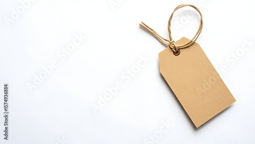 Blank kraft paper tag with string for product pricing or gift tag on white background