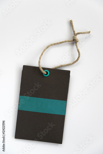 Blank label (tag) tied with stringon white background. Price tag