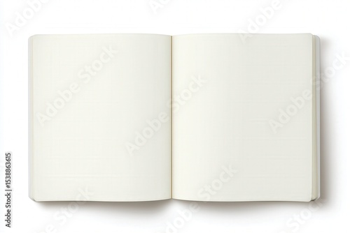 Blank notebook lies open on a table inviting new ideas and creative thoughts for exploration