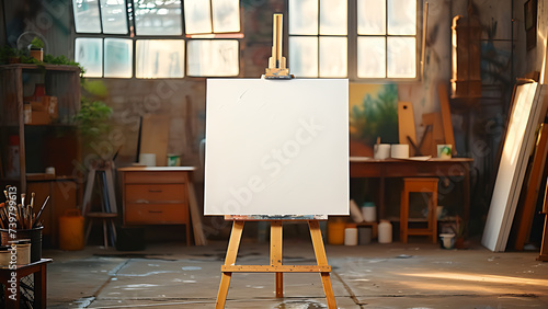 Blank painting canvas with painting art workshop background.