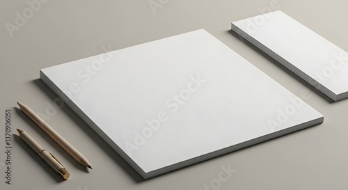 Blank Paper and Pen on Neutral Background Mockup for Design Presentation