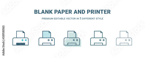 blank paper and printer icon in 5 different style. Outline, filled, two color, thin blank paper and printer icon. Editable vector can be used web and mobile
