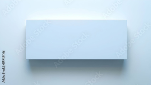 Blank rectangle box mockup, light blue studio background, minimalist design, website banner template.