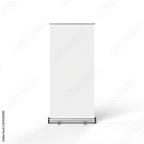 Blank retractable banner stand on white background, studio shot, vertical, mockup