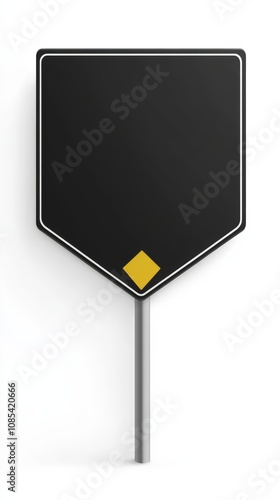 Blank Road Sign Mockup: A versatile, isolated mockup of a black diamond-shaped road sign, offering a blank canvas for your custom message, design, or brand. Perfect for safety, construction.
