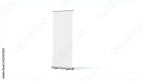 blank roll up standee mockup on white background, ideal for showcasing designs or advertisements. This versatile display is perfect for events and presentations