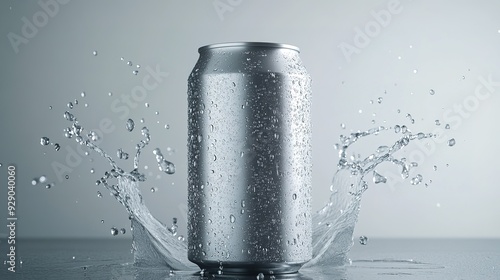 Blank silver aluminum 330 ml soda can with drops splash mockup