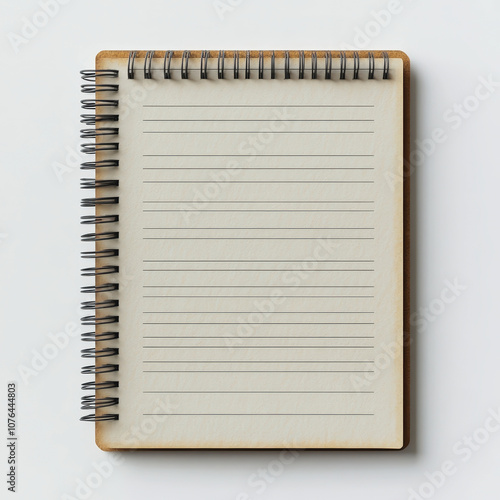Blank spiral notebook with lined pages on a minimalist background for writing, jotting notes, sketches, or creative ideas in an organized manner.