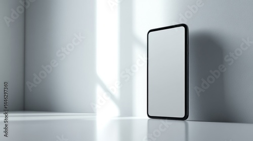 Blank tablet screen in minimal white room