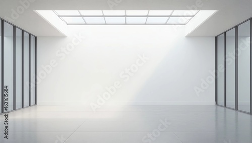 Blank wall in bright concrete office with large windows Mockup 3D rendering