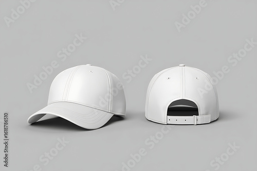 Blank White Baseball Cap Front and Back View Apparel Mockup on Gray Background