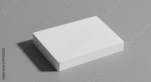 Blank white business card stack on gray surface. Stack of clean, unmarked business cards arranged on a neutral background.