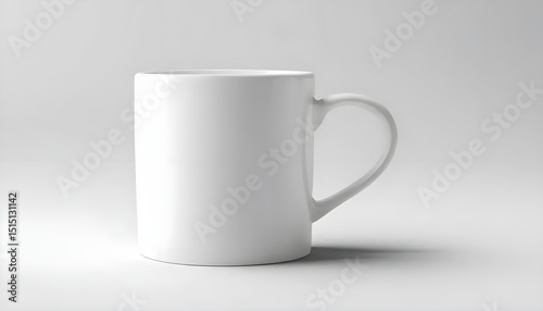 Blank white coffee mug studio setting product photography minimalist background close-up view customization potential