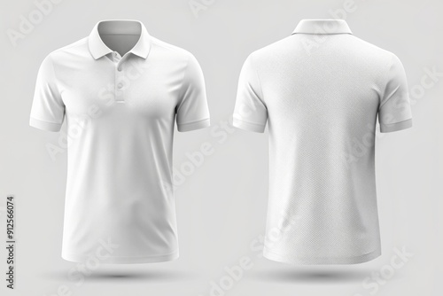 Blank white front and back polo T-shirts mockup template isolated on transparent background, perfect for design presentation, customization, and printing of promotional apparel.