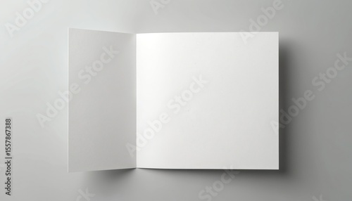 Blank white greeting card mockup opened on neutral background. Minimalist design template for message presentation, invitation, announcement. Perfect for design, marketing promotion, branding visual,