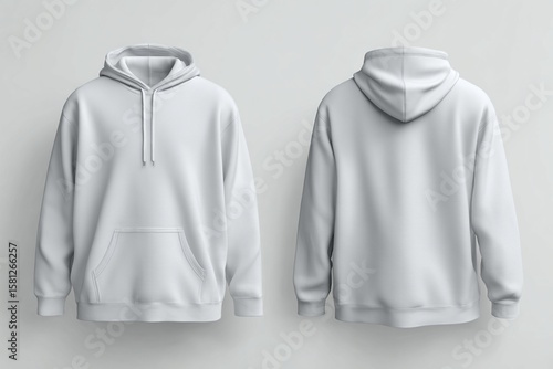Blank White Hoodie Mockup Displaying Front and Hind Views on a Neutral Background