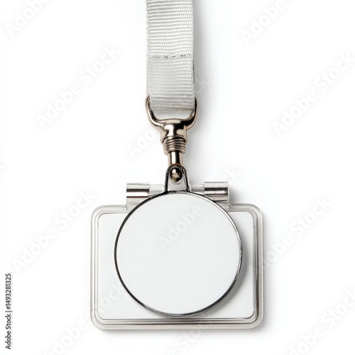 Blank white ID holder with lanyard. Perfect for branding or customization.
