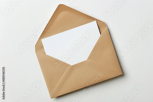 blank white paper in brown envelope on white background for business correspondence and personal letters