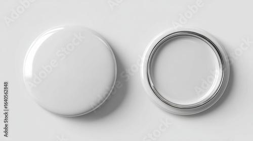 Blank white round button mockup, open and closed