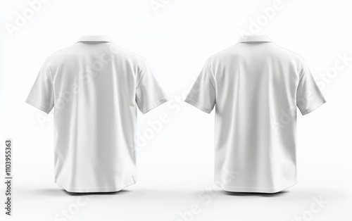 Blank white shirt mockup, front and back view, 3D rendering, white background