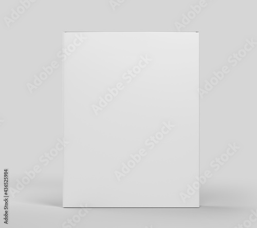 Blank white software box Mockup, medium size Cardboard package box, 3d rendering isolated on light gray background, ready for your design