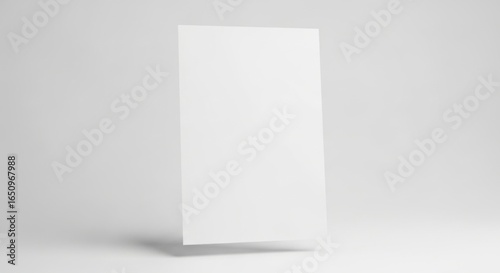 Blank White Vertical Poster Standing on Light Gray Background for Presentation or Display