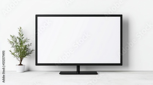 Blank Wide Screen Television Mockup with Small Plant