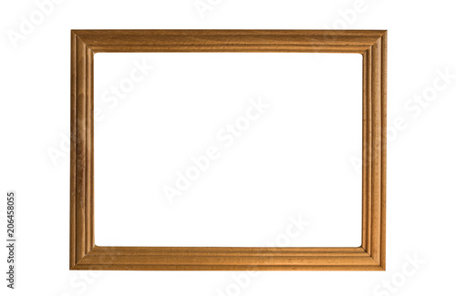 Blank wooden frame isolated on white background. Mockup for design.
